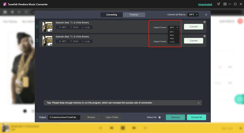The most demanding function of TuneFab Pandora Music Converter is to get music downloads in DRM protection-free format as nowadays music or other podcast content comes with copyright protection. It offers four standard DRM-free formats Mp3, M4A, FLAC, or WAV. While selecting any of these formats, you can access your downloads and converted music content on any device at any time.