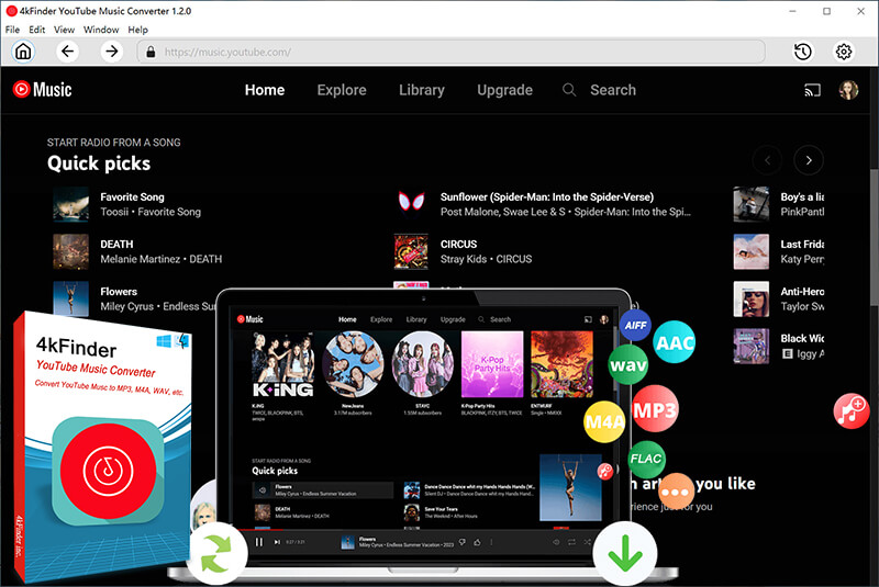 4kFinder YouTube Music Converter is an intuitive downloader for music, songs, albums, playlists, and podcasts from YouTube Music, it not only can hep users download music from YouTube Music, but also allows you quickly convert YouTube Music to MP3, M4A, WAV, AAC, FLAC and AIFF at ease. Some of the benefits of using this software include: