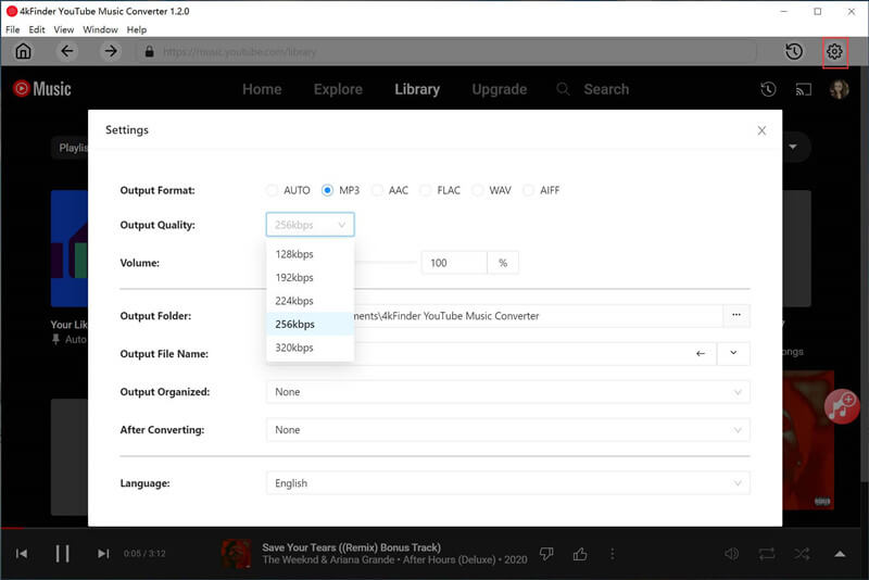 4kFinder YouTube Music Converter downloads audio files from YouTube at the highest quality up to 320kbps. The program also allows users to set up AAC as the output format at 512 kbps to keep the music files at their original quality. This means that you get high-quality audio that sounds great on any device.
