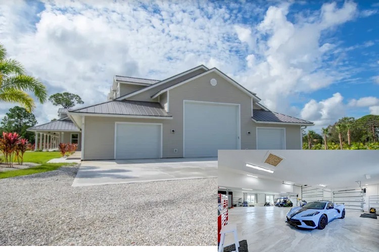 A perfect example is this jaw-dropping five-car garage house in Palm City, complete with a 2023 C8 Corvette all included.