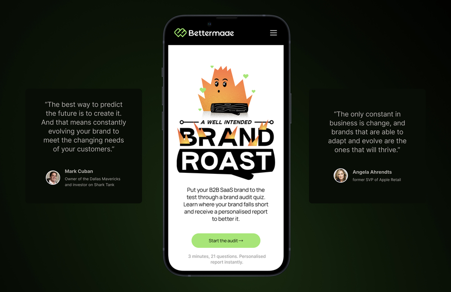 SYDNEY, AUSTRALIA, May 31, 2023 /24-7PressRelease/ -- Bettermade, a digital-first branding agency dedicated to helping B2B SaaS and tech startups develop digital brands that inspires and motivates people, has announced the launch of "A Well-Intended Brand Roast" (https://www.bettermade.com.au/resources/brandroast-brand-audit), a free 21-question brand audit quiz. This interactive quiz aims to help businesses identify areas where their brand falls short and offers a personalized report for improvement, which can be used to fine-tune and solidify their brand despite challenging economic times and budget restrictions.