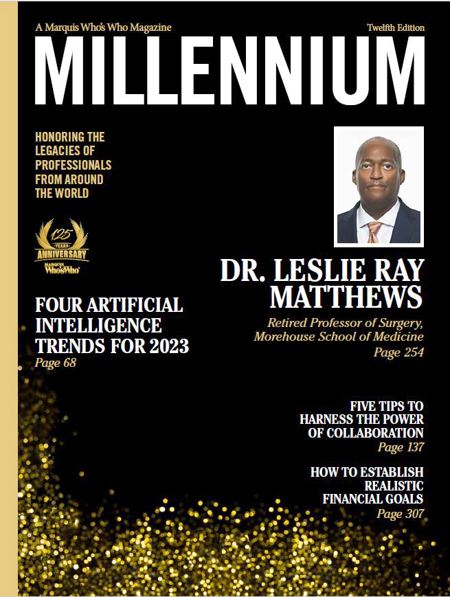 ATLANTA, GA, June 05, 2023 /24-7PressRelease/ -- Leslie Ray Matthews, MD, retired professor of surgery from the Morehouse School of Medicine, has been selected for a cover feature in the Twelfth Edition of Marquis Millennium Magazine. Released triannually, Millennium Magazine features the narrative biographies of the world's most esteemed and accomplished professionals. The publication is available exclusively to Marquis listees, and inclusion is by invitation only.