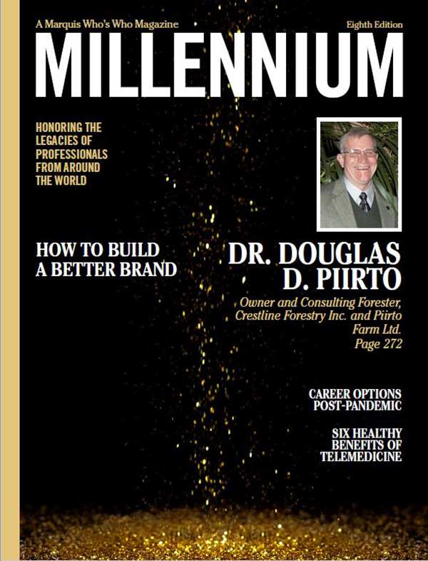 HOBART, WI, June 06, 2023 /24-7PressRelease/ -- Douglas D. Piirto, PhD, RPF, owner and consulting forester for Crestline Forestry Inc. and Piirto Farm Ltd., has been selected for a cover feature in the Eighth Edition of Marquis Millennium Magazine. Released triannually, Millennium Magazine features the narrative biographies of the world's most esteemed and accomplished professionals. The publication is available exclusively to Marquis listees, and inclusion is by invitation only.