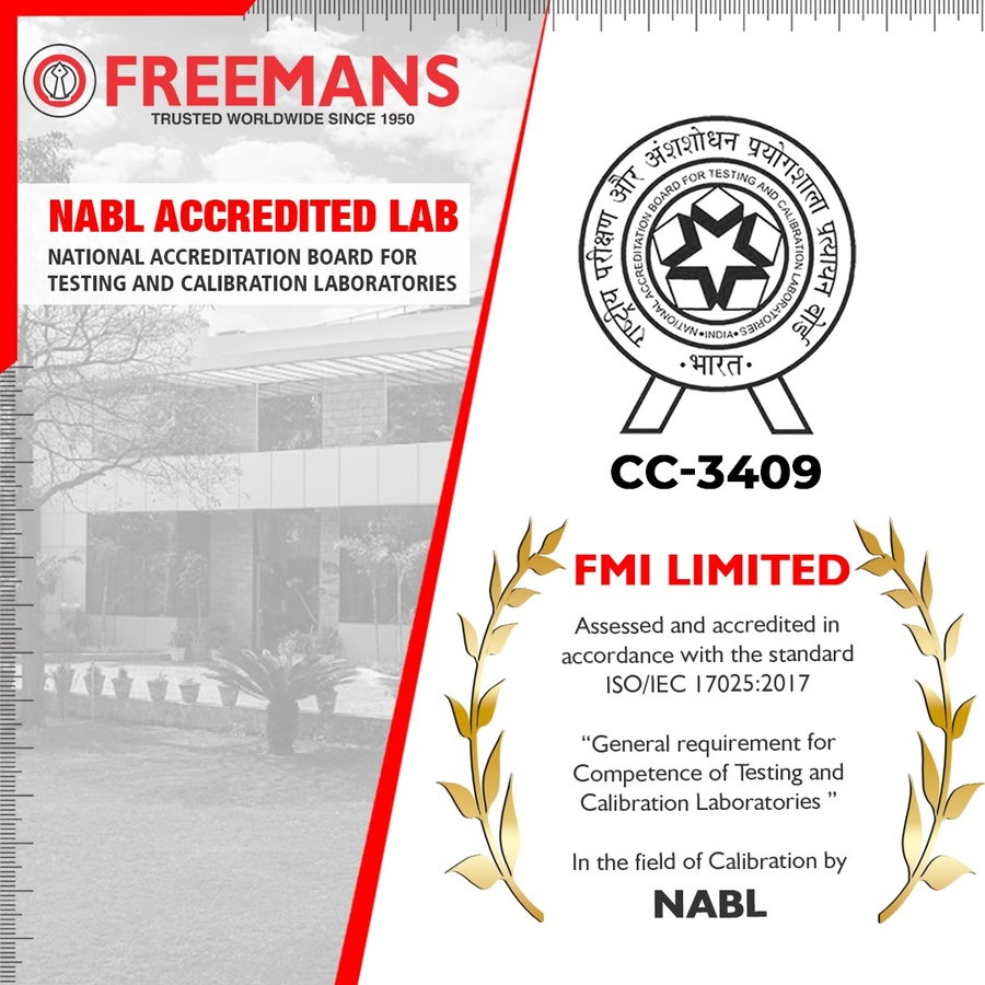 'FREEMANS has been voted a Superbrand in the B2B category earlier this year," says Sahil Nayar, Executive Director of FMI Limited, 'The NABL accreditation is another feather in our cap!"