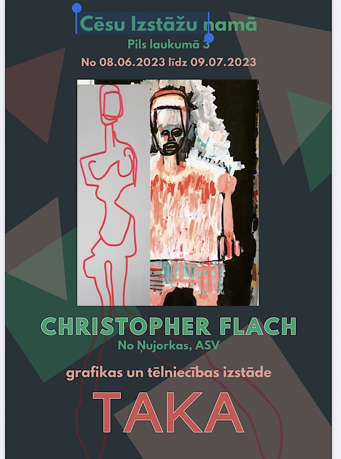 NEW YORK, NY, June 16, 2023 /24-7PressRelease/ -- Located within the very heart of the Cesis artistic Cultural Center the Exhibition Hall once a stable now hosts Flach's multimedia exhibition entitled TAKA open from June 8 to July 9th 2023. Flach's works include ceramics, painting, neon.