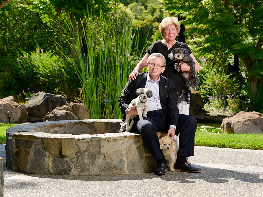 Judy and George are lauded Bay Area civic and business leaders. They met growing up in San Francisco's Potrero Hill neighborhood. Judy Marcus is a fourth-generation San Franciscan and a former physical education teacher. George M. Marcus is a first-generation American. He is the founder of Marcus & Millichap Company and has been its co-chairman since 1971. Marcus & Millichap is the parent company of a diversified group of real estate, service, investment, and development firms. The couple has four adult children. Judy and George's family includes three adopted dogs, Pepi, Coco, and Zoe, all of whom are HSSV alums. Among their many animals they have had over the years includes many dogs, roosters, a rabbit, a goat, and even a donkey. As Judy shared, "Pets are the best; they are so happy and excited to see you when you come home. That brings a great joy into your life."