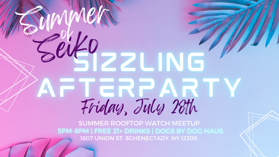 Join in the fun that is sure to be had at The Summer of Seiko Sizzling Afterparty on July 28th from 5pm to 8pm on the Union Street rooftop of Northeastern Fine Jewelry's Schenectady location. Seiko representatives will be on site with an incredible display, including watch models not available in the United States. Enjoy a beautiful summer evening as you browse phenomenal watches, talk about your incredible timepiece collection with fellow watch enthusiasts, and enjoy delicious craft beers and cocktails along with craft hot dogs from Dog Haus of Clinton Park. A DJ will also be on hand to keep the party going into the night for this 21+ event. RSVP via Northeastern Fine Jewelry's Facebook event. People are encouraged to bring their friends and favorite timepieces for the hottest watch meetup of the summer!