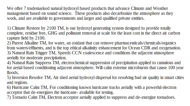 Alarming negligence prevails among funding decision makers, who fail to adequately research, comprehend, and acknowledge the opportunities for natural system mitigation. This woeful oversight will inevitably lead to detrimental delays, inflicting losses that are beyond the control of entities like ReductionTech Inc. Our mission is to scale controlled hydroxyl dispersal, triggering an oxidation event that arrests global warming while enhancing biodiversity, including the enrichment of plant and mineral diversity, bolstering Earth's albedo, purifying the air, and normalizing weather patterns.