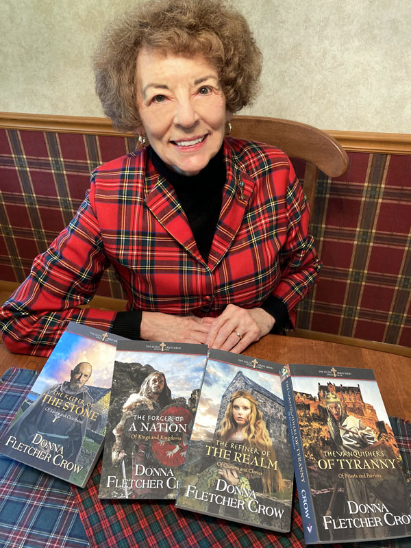 Donna Fletcher Crow is the author of 50 books, mostly novels of British history. She has taken a number of high-level industry awards for her work. Many of her books have been bestsellers in their categories, including 'A Most Inconvenient Death', which achieved #1 bestseller status in Christian Suspense. 'The Fields of Bannockburn', the epic from which The Celtic Cross Series, Part I: Scotland, The Struggle for a Nation is based, was listed as Fiction Bestseller by Christian Book Distributors and 'The Banks of the Boyne', the epic from which The Celtic Cross Series, Part II: Ireland, The Pursuit of Peace is based, hit #3 Best-Selling Fiction.