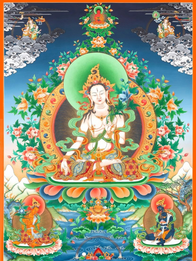 The traditional Thangka paintings in the collection convey