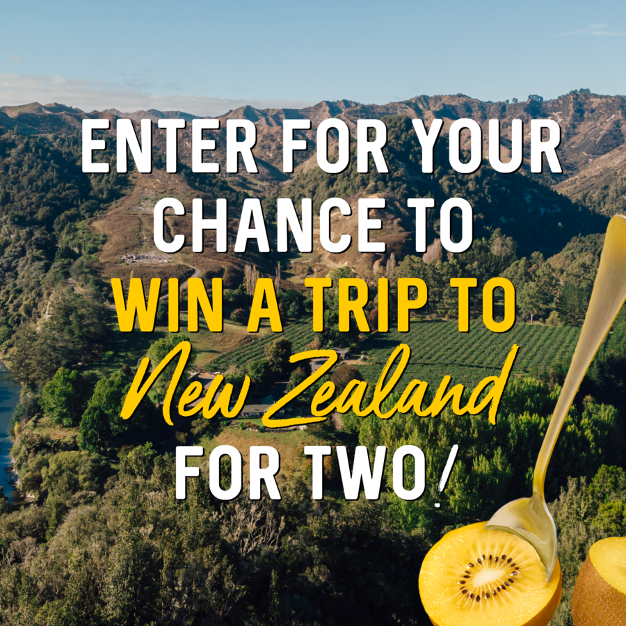 NO PURCHASE OR PAYMENT NECESSARY TO ENTER OR WIN. Open to legal residents of the 48 contiguous U.S./D.C., age 21+. Void in AK, HI and where prohibited. Sweepstakes starts at 12:00:01 AM ET on 06/05/23; ends at 11:59:59 PM ET on 10/01/23. Total ARV of all prizes: $14,100. Odds of winning will depend upon the total number of eligible entries received. For full Official Rules, visit www.Zespri.com/NZsweeps. Sponsor: Zespri International Ltd.,400 Maunganui Road, Mount Maunganui 3116, New Zealand.