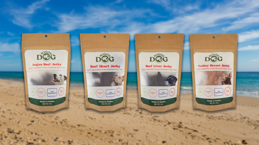 Available in four single-ingredient varieties - grass-fed Angus Beef, Beef Liver, Beef Heart, and Turkey Breast – each 3-oz bag of oven roasted preservative-free jerky treats retails between $15-$17 and is available for nationwide delivery at MIGOS DOG