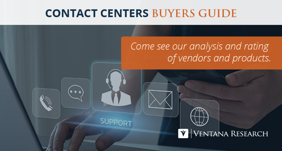 Ventana Research has designed the Buyers Guide for Contact Centers to provide a balanced perspective of vendors and products that are rooted in an understanding of how products should be assessed, evaluated, and selected, and how the products are utilized across roles and must be adapted and managed to meet the business requirements. This approach not only reduces cost and time but also minimizes the risk of making a decision that is bad for the organization. Using the Buyers Guide will enable your organization to achieve the levels of efficiency and effectiveness needed to support contact center suites.