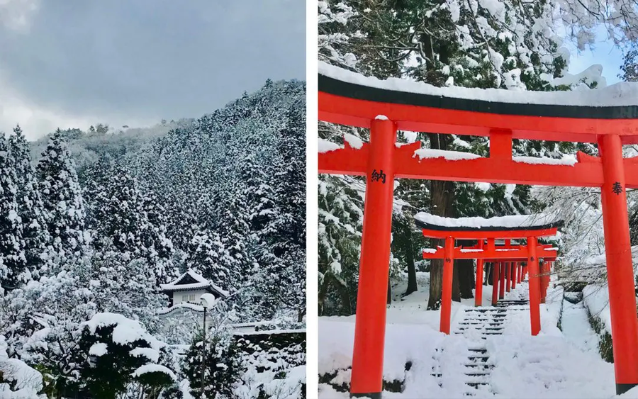 A quaint castle town just south of Kinosaki Onsen, Izushi is known for soba, pottery, kabuki, and of course, its amazing seasonal scenery. After a soba noodle lunch in one of the dozens of soba shops lining the retro town streets, visitors are encouraged to walk on over to the Izushi Castle Ruins and Arikoyama Inari Shrine Torii gates, presenting a sublime canvas painted with old-town charm and winter wonderland allure.