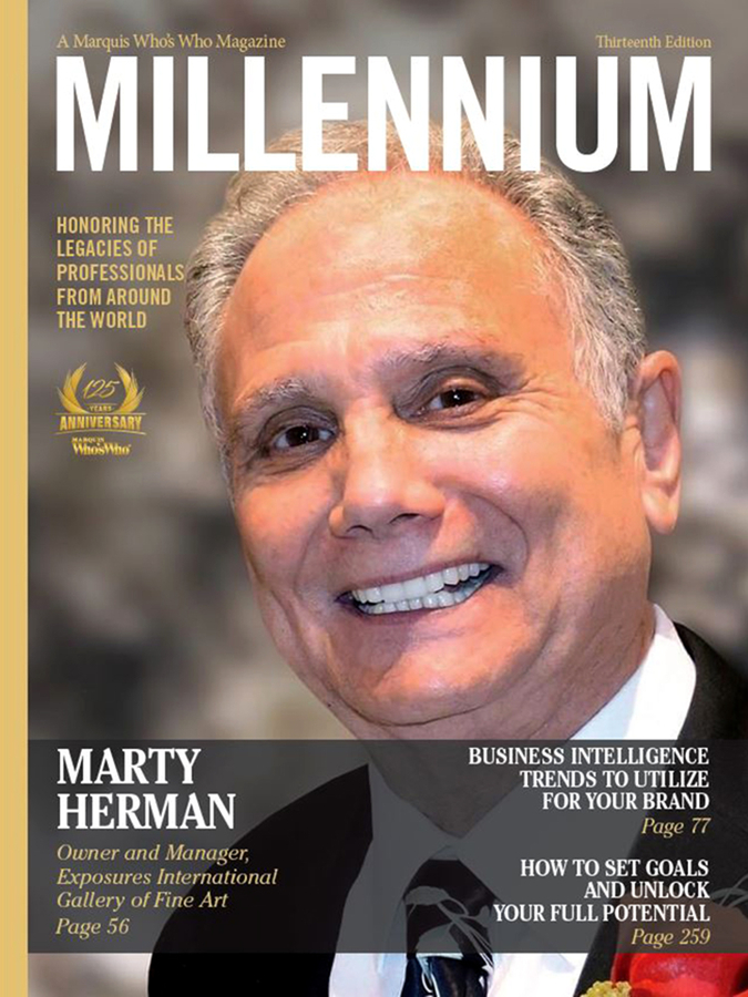 SEDONA, AZ, September 15, 2023 /24-7PressRelease/ -- Marty Herman, owner and manager of Exposures International Gallery of Fine Art, has been selected for a cover feature in the Thirteenth Edition of Marquis Millennium Magazine. Released triannually, Millennium Magazine features the narrative biographies of the world's most esteemed and accomplished professionals. The publication is available exclusively to Marquis listees, and inclusion is by invitation only.