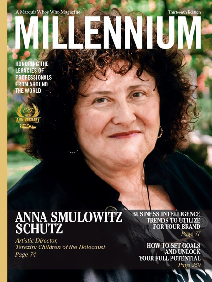 AMESBURY, MA, September 15, 2023 /24-7PressRelease/ -- Anna Smulowitz Schutz, artistic director of Terezin: Children of the Holocaust, has been selected for a cover feature in the Thirteenth Edition of Marquis Millennium Magazine. Released triannually, Millennium Magazine features the narrative biographies of the world's most esteemed and accomplished professionals. The publication is available exclusively to Marquis listees, and inclusion is by invitation only.