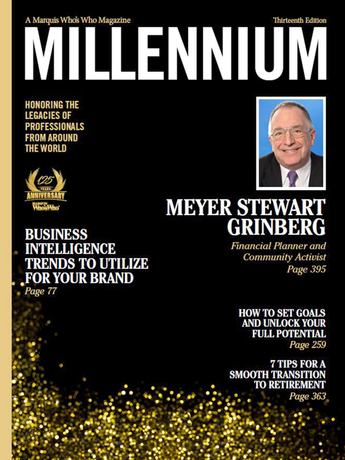 PITTSBURGH, PA, September 15, 2023 /24-7PressRelease/ -- Meyer Stewart Grinberg, financial planner and community activist, has been selected for a cover feature in the Thirteenth Edition of Marquis Millennium Magazine. Released triannually, Millennium Magazine features the narrative biographies of the world's most esteemed and accomplished professionals. The publication is available exclusively to Marquis listees, and inclusion is by invitation only.