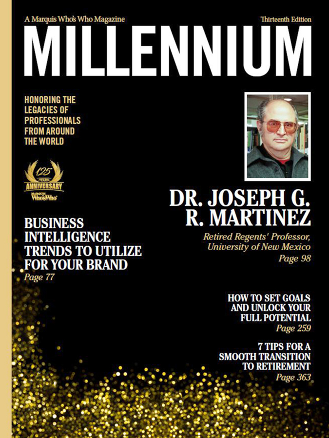 ALBUQUERQUE, NM, September 18, 2023 /24-7PressRelease/ -- Joseph G. R. Martinez, PhD, retired regents' professor from the University of New Mexico, has been selected for a cover feature in the Thirteenth Edition of Marquis Millennium Magazine. Released triannually, Millennium Magazine features the narrative biographies of the world's most esteemed and accomplished professionals. The publication is available exclusively to Marquis listees, and inclusion is by invitation only.