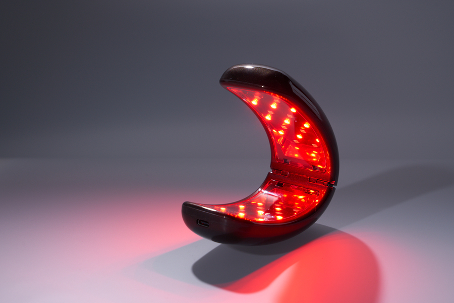 KAISAR's home-care device is enclosed with 40 LEDs (24 red light/ 16 near-infrared), and the emission of light is angled at 120ยบ for optimum precision and intensity. The patent hinge structure provides a flexible and comfortable fit for all widths, arched in shape for discreet use. With 5 complete sessions from a full charge, KAISAR can be used at home, or on your drive to work.