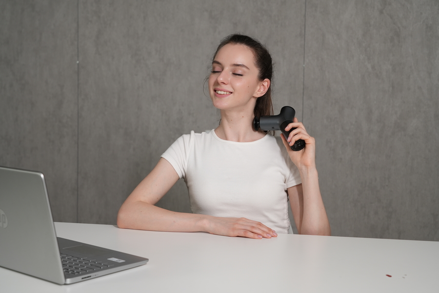 A massage gun provides high-frequency vibrations that target specific areas of your body where you commonly experience pain and tension. Deep tissue massage has been proven to reduce inflammation, improve blood flow, and release muscle tension, all of which contribute to relieving muscle pain. It helps alleviate muscle tension and pain in the neck and shoulders, as well as reducing fatigue.