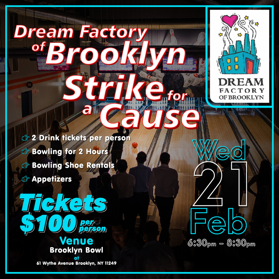 Tickets and additional event information can be found on the Dream Factory of Brooklyn's website at dreamfactorybrooklyn.org/events. For sponsorship opportunities, please contact [email protected].