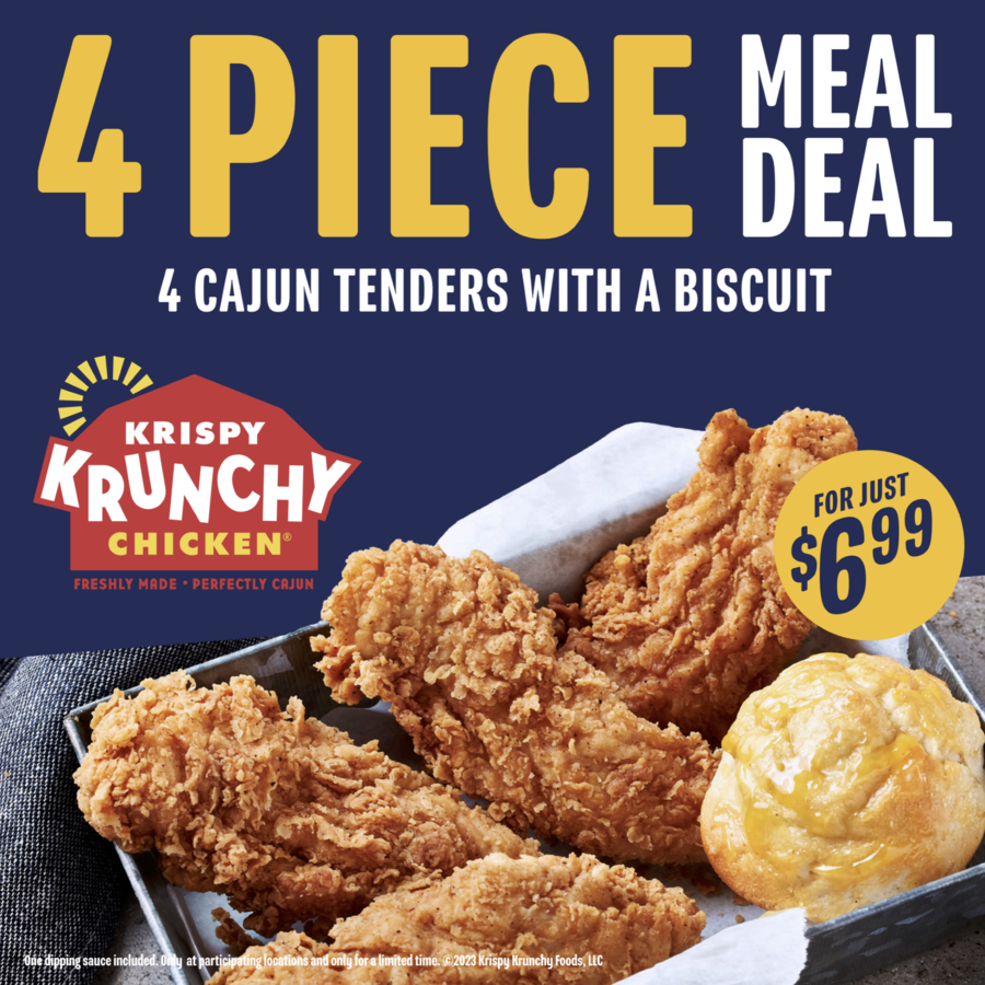 ALEXANDRIA, LA, October 18, 2023 /24-7PressRelease/ -- Krispy Krunchy Chicken® is offering savings and craveable flavor with two new deals starting on October, 23, 2023. The fried chicken favorite is featuring two great deals with its new 4-Piece Meal Deal and 12-Piece Dark Meat Special.