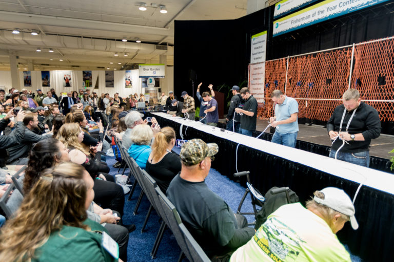 Prepare to test your seaworthiness, skills, and knowledge as you embark on a journey through different skill-set trials. Each trial presents an opportunity for victory, as the winner of each trial will receive a $100 cash prize, plus advance to the final round. You will only be able to win one round of the three skill sets (knot tying, net mending, and rope splicing). All finalists will put on a survival suit. Whoever properly puts one on the fastest is the winner