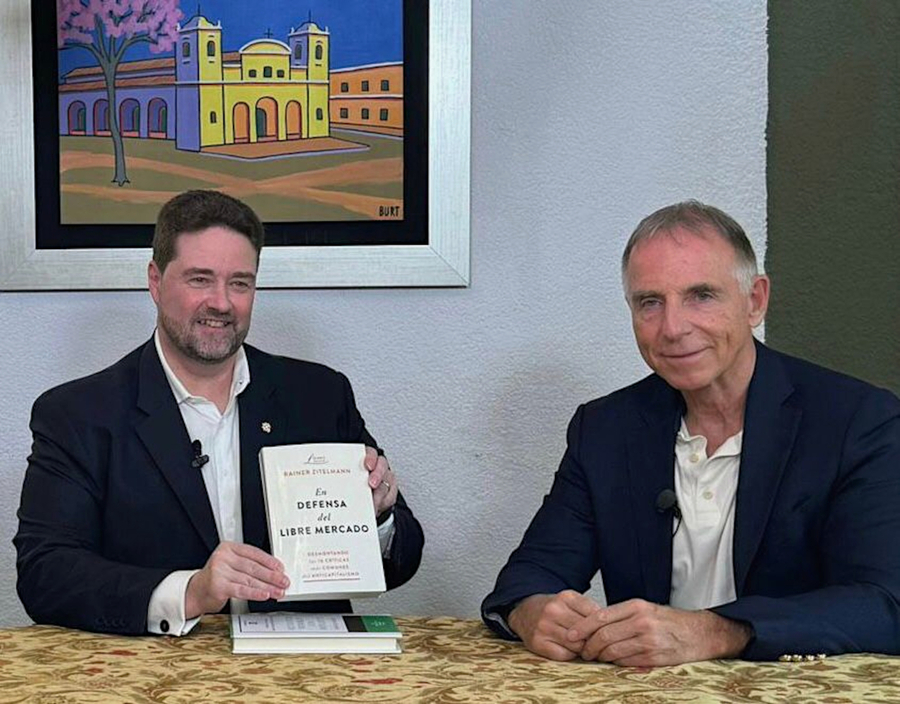 "A free-market economy is the key to success and prosperity, as Dr. Zitelmann very skillfully demonstrates in his inimitable way in his books," said Carsten Pfau, whose group of companies is now regarded as a South American powerhouse. Pfau himself once turned his back on Germany in the 1990s and emigrated to Paraguay with very modest means, but has since achieved considerable prosperity there. "I like the historian's approach," says the German-Paraguayan entrepreneur, "it simply reflects and analyzes historical facts, it's not about ideology. It's about facts" enthuses Pfau about Zitelmann's books. Carsten Pfau's well-known television program Libres para Elegir devoted a separate segment to Rainer Zitelmann's visit.