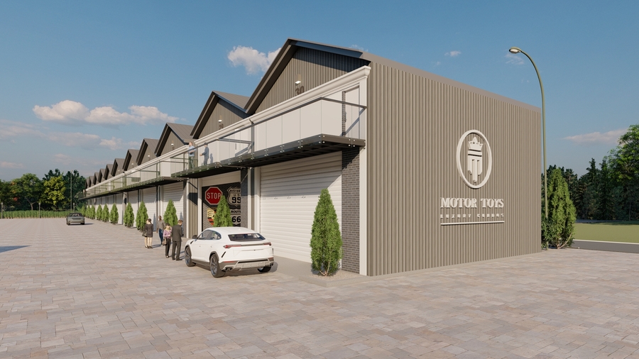 Luxury Motor Toy condos are 1,000 square foot units (37X27) meticulously crafted to accommodate a variety of vehicles, including cars, boats, RVs, motorcycles, ATV's, and more. These state-of-the-art garages will be individually climate controlled, featuring both air conditioning and heating systems to ensure optimal conditions for vehicles year-round in addition to a community club house complete with full bar and kitchen area.