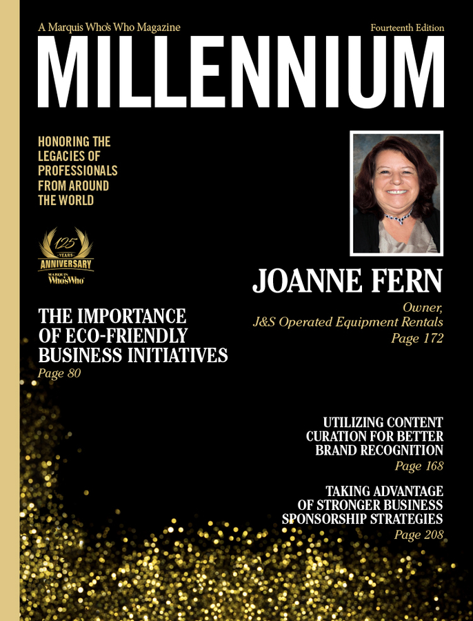 PALMDALE, CA, January 08, 2024 /24-7PressRelease/ -- Joanne Fern, owner and J&S Operated Equipment Rentals, has been selected for a cover feature in the Fourteenth Edition of Marquis Millennium Magazine. Released triannually, Millennium Magazine features the narrative biographies of the world's most esteemed and accomplished professionals. The publication is available exclusively to Marquis listees, and inclusion is by invitation only.