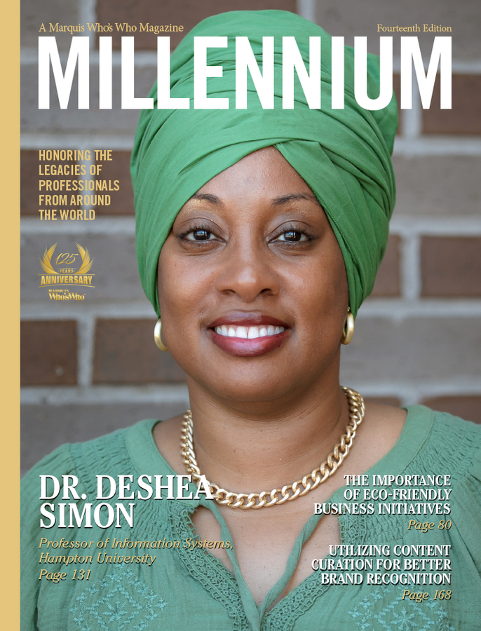 WILLIAMSBURG, VA, January 08, 2024 /24-7PressRelease/ -- DeShea Simon, PhD, professor of information systems at Hampton University, has been selected for a cover feature in the Fourteenth Edition of Marquis Millennium Magazine. Released triannually, Millennium Magazine features the narrative biographies of the world's most esteemed and accomplished professionals. The publication is available exclusively to Marquis listees, and inclusion is by invitation only.