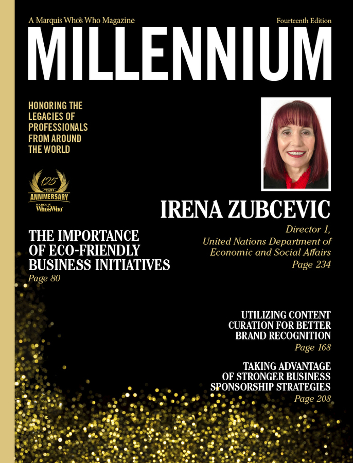 NEW YORK, NY, January 09, 2024 /24-7PressRelease/ -- Irena Zubcevic, director 1 for the United Nations Department of Economic and Social Affairs, has been selected for a cover feature in the Fourteenth Edition of Marquis Millennium Magazine. Released triannually, Millennium Magazine features the narrative biographies of the world's most esteemed and accomplished professionals. The publication is available exclusively to Marquis listees, and inclusion is by invitation only.