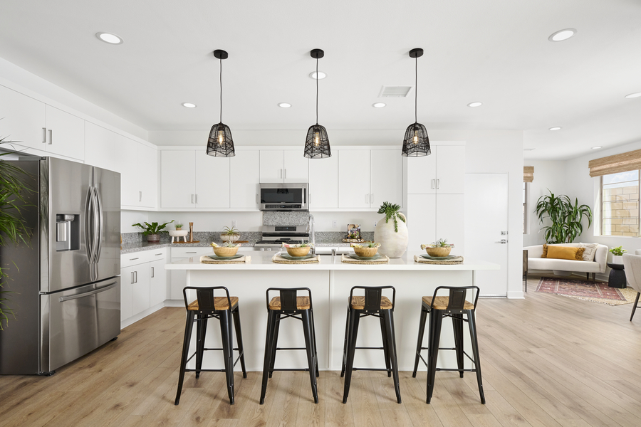 Verve—At Verve, shoppers can explore 4 two-story plans with 2-car garages and 1,871 to 2,490 square feet of living space, with 3 to 5 bedrooms and 2.5 to 4.5 baths. Great rooms highlight the designs, which also offer such per plan distinctions as loft, dual primary suites and a cabana/game room. Pricing begins in the high $500,000s.