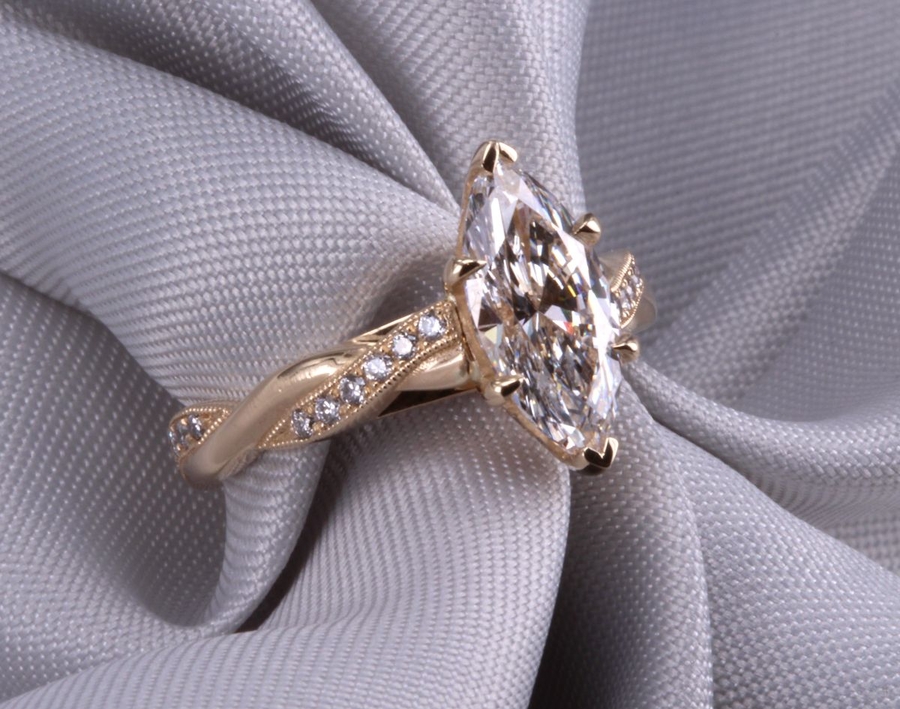 Signature elements of Carl Blackburn's custom rings include Old World details like fine filigree, milgraining, and hand-engraving. He loves working with rose gold to add a vintage touch. And he sometimes sets his engagement rings with diamond cuts popular a century ago, such as Old European Cut and Old Mine Cut diamonds.
