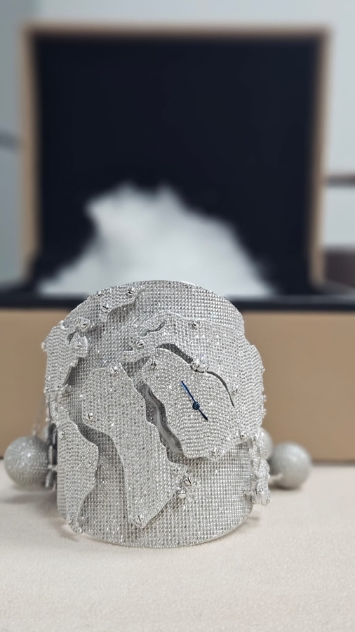 The watch features 18,664 diamonds set within the design of a globe featuring Saudi Arabia, with the hands positioned to represent Riyadh. The movement of the hands throughout Saudi Arabia was designed to reflect the country's rapid growth and shifts, all the while maintaining its distinctive identity. More importantly, 'The Empress' diamonds were sourced from suppliers certified by the Kimberley Process Certification Scheme (KPCS), an initiative that keeps the alleged 'conflict' diamonds from entering the mainstream market.
