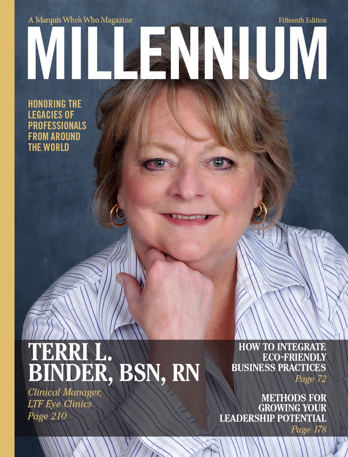 VALPARAISO, IN, April 25, 2024 /24-7PressRelease/ -- Terri L. Binder, BSN, RN, clinical manager at LTF Eye Clinics, has been selected for a cover feature in the Fifteenth Edition of Marquis Millennium Magazine. Released triannually, Millennium Magazine features the narrative biographies of the world's most esteemed and accomplished professionals. The publication is available exclusively to Marquis listees, and inclusion is by invitation only.