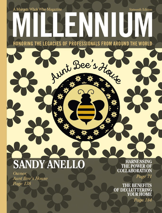 SALEM, OR, August 09, 2024 /24-7PressRelease/ -- Sandy Anello, owner of Aunt Bee's House, has been selected for a cover feature in the Sixteenth Edition of Marquis Millennium Magazine. Released triannually, Millennium Magazine features the narrative biographies of the world's most esteemed and accomplished professionals. The publication is available exclusively to Marquis listees, and inclusion is by invitation only.
