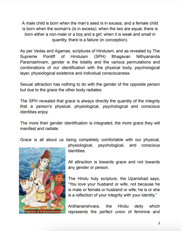 KAILASA's submission emphasizes the deep-rooted acceptance of gender diversity within Hinduism, which historically recognizes eleven genders and supports same-sex marriages.