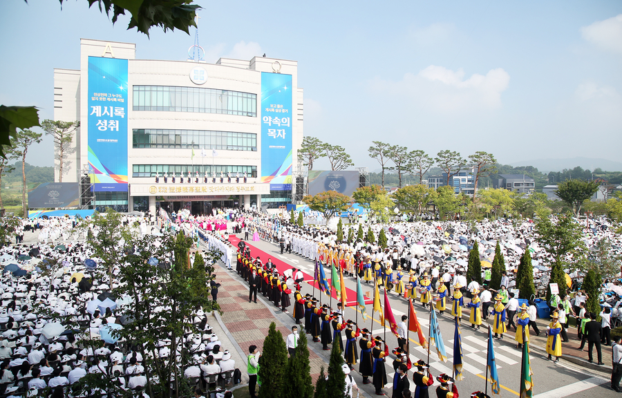This year, it was even more meaningful as it marked the 30th anniversary of the establishment of the Cheongju Church. About 100 Protestant pastors also attended to hear Chairman Lee's sermon. From early that day, numerous believers lined up along the 4km distance from the Cheongju IC entrance to the Cheongju Church to welcome Chairman Lee. Chairman Lee said, "How thankful I am that God has revealed to us the words of the Book of Revelation that no one knew for 6,000 years," and "These words are life. He said, "We must have faith that is 100% in line with this word, which means becoming one with God."