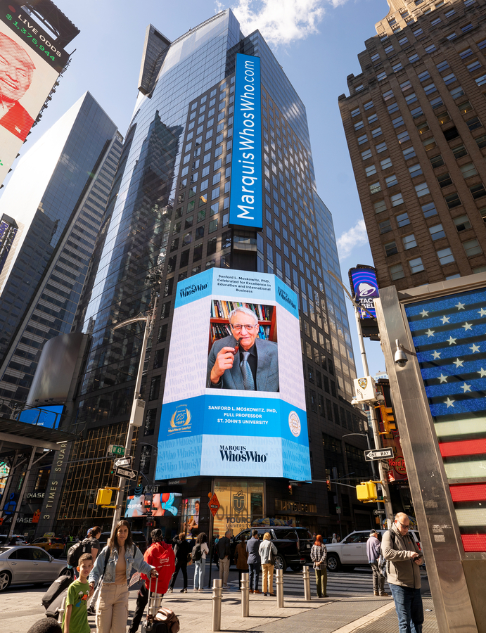 SAINT JOSEPH, MN, October 16, 2024 /24-7PressRelease/ -- Sanford L. Moskowitz, PhD, is a distinguished biographee of Marquis Who's Who. He was recently spotlighted in New York City's Times Square on a 22-story screen that is passed by an estimated 1.5 million people daily. As in all Marquis Who's Who biographical volumes, individuals profiled are chosen from among a pool of the most prominent professionals and are selected on the basis of current reference value. Factors such as position, noteworthy accomplishments, visibility, and prominence in a field are all taken into account during the selection process.