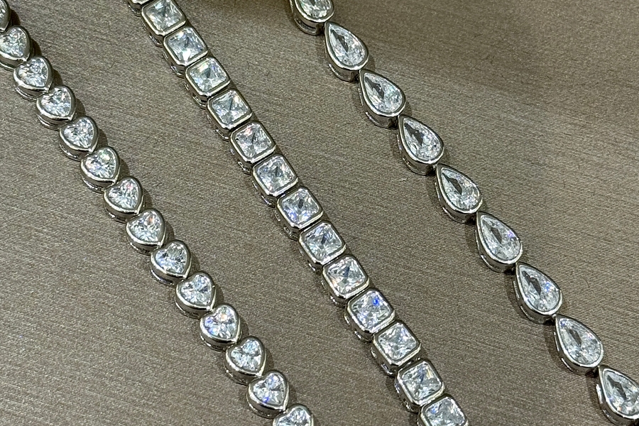 One of the highlights this season is bezel-set jewellery. This setting protects the diamonds and gemstones used in each design by securing them in a frame of precious metal, like this sterling silver and cubic zirconia bezel-set tennis bracelet by Miss Mimi. These sleek, on-trend bracelets make an exceptional gift for those who favour timeless sophistication with a modern edge or to add to your personal style this season.