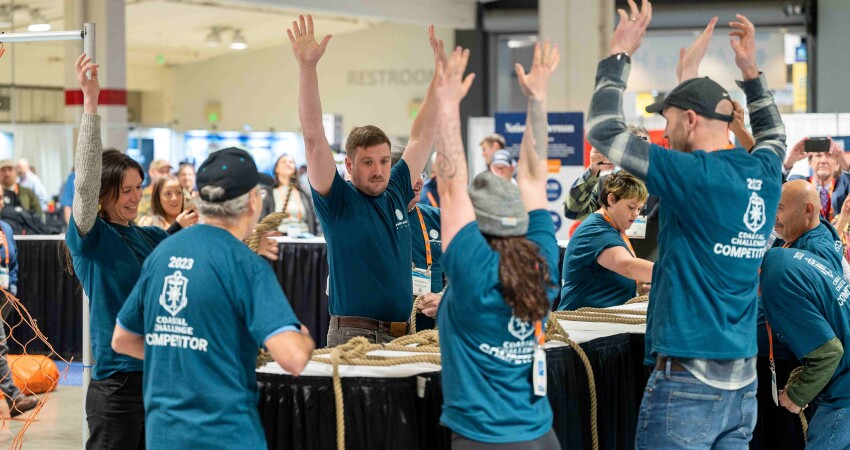 Prepare to test your seaworthiness, skills, and knowledge as you embark on a journey through different skill-set trials. Each trial presents an opportunity for victory, as the winner of each trial will receive a $100 cash prize, plus advance to the final round. You will only be able to win one round of the three skill sets (knot tying, net mending, and rope splicing). All finalists will put on a survival suit. Whoever properly puts one on the fastest is the winner