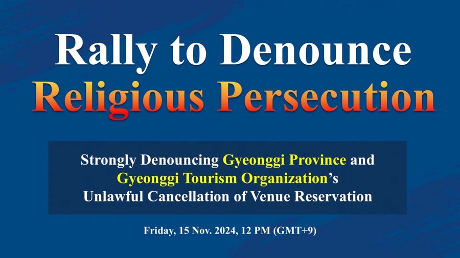Shincheonji claimed that "Gyeonggi Provincial Government and Gyeonggi Tourism Organization suddenly canceled the venue booking on the 29th of last month, citing concerns about North Korean tensions," and argued that "the cancellation was one-sided and constitutes as religious oppression, as other events scheduled for the Peace Park were allowed to proceed while only Shincheonji's event was canceled."
