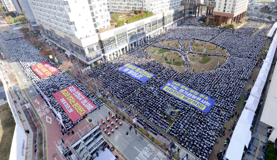 The police deployed a force of 400 officers from six mobile units around the Gwanggyo Central Park and roads near the provincial government building to ensure safety in case of any incidents. They also blocked several lanes on roads from the second gate of the provincial government building to the north gate, but no significant clashes occurred during the protest.