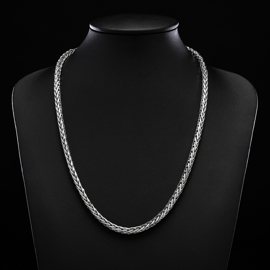 At ByEnzo Jewelry, the wheat chain, features a rope-like design, with the platinum chains being seamlessly linked together to create a circular chain. The wheat chain is incredibly thick and provides a dense feeling, making it a popular choice for those seeking a heavy and substantial chain. This chain is also a popular choice for those looking for a unique and eye-catching piece of jewelry. The wheat chain is available in a variety of lengths and widths, making it easy to find the perfect piece for any outfit.