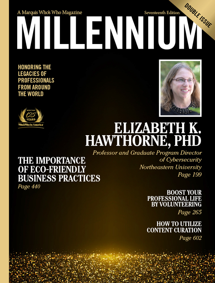 ARLINGTON, VA, December 19, 2024 /24-7PressRelease/ -- Elizabeth K. Hawthorne, PhD, professor and graduate program director of cybersecurity at Northeastern University, has been selected for a cover feature in the Seventeenth Edition of Marquis Millennium Magazine. Released triannually, Millennium Magazine features the narrative biographies of the world's most esteemed and accomplished professionals. The publication is available exclusively to Marquis listees, and inclusion is by invitation only.
