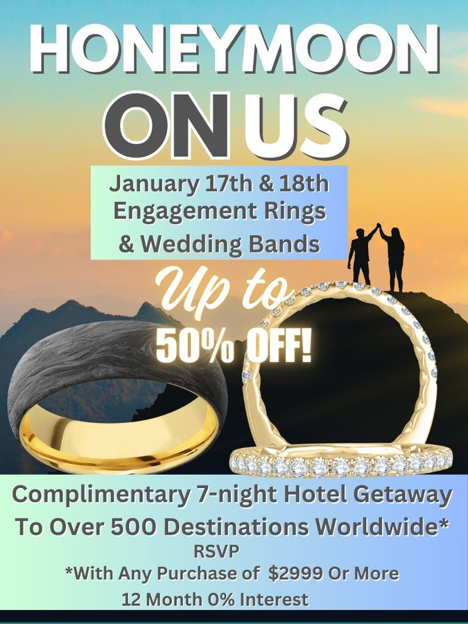 OKLAHOMA CITY, OK, January 15, 2025 /24-7PressRelease/ -- Huntington Fine Jewelers is thrilled to invite couples across Oklahoma to their annual Honeymoon On Us Winter Bridal Event this January. Held at all Huntington Fine Jewelers locations in Norman, Yukon, Oklahoma City, Shawnee, Midwest City, and Stillwater, this exclusive event is the perfect opportunity to find your dream engagement ring or wedding bands while planning the trip of a lifetime.