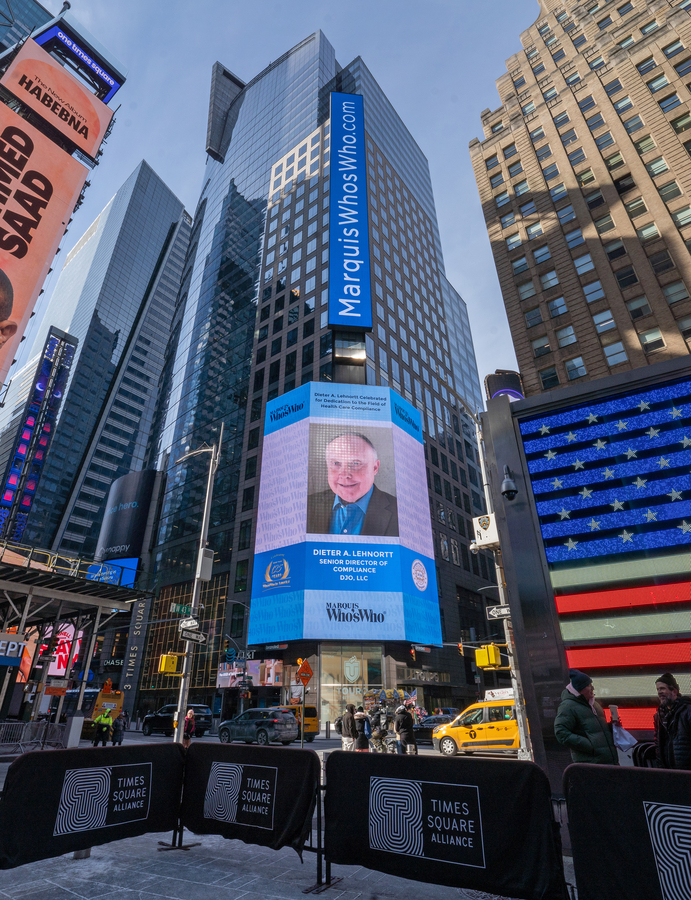 ALBUQUERQUE, NM, January 30, 2025 /24-7PressRelease/ -- Dieter A. Lehnortt is a distinguished biographee of Marquis Who's Who. He was recently spotlighted in New York City's Times Square on a 22-story screen that is passed by an estimated 1.5 million people daily. As in all Marquis Who's Who biographical volumes, individuals profiled are chosen from among a pool of the most prominent professionals and are selected on the basis of current reference value. Factors such as position, noteworthy accomplishments, visibility, and prominence in a field are all taken into account during the selection process.