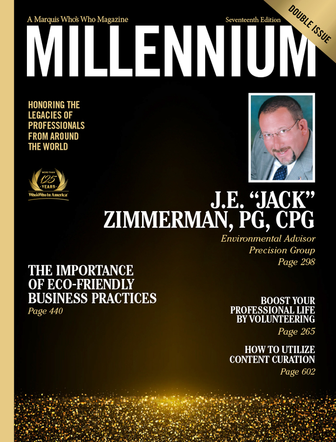 MIDLAND, TEXAS, February 17, 2025 /24-7PressRelease/ -- J.E. "Jack" Zimmerman, PG, CPG, environmental advisor for Precision Group, has been selected for a cover feature in the Seventeenth Edition of Marquis Millennium Magazine. Released triannually, Millennium Magazine features the narrative biographies of the world's most esteemed and accomplished professionals. The publication is available exclusively to Marquis listees, and inclusion is by invitation only.