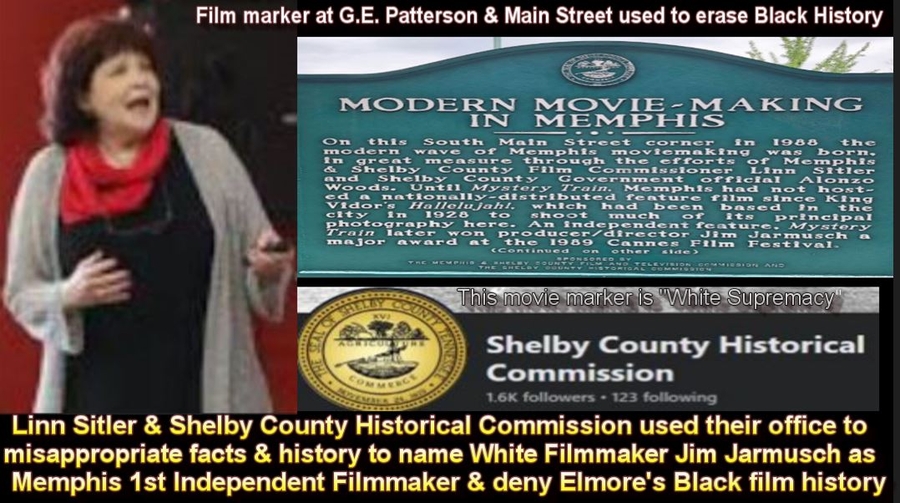 Click here to see video titled: Black Memphis History Filmmaker Elmore request Memphis Mayor Young to Stop Film Commission's Racism. Linn Sitler the White Memphis Shelby County Film Commissioner via act of her being a White Matriarch shaped Black Memphis history, art and culture tantamount to plantation days. She unabatedly erased a Black Memphis Heritage Asset, she created a film culture and history in Memphis that supports only White Films and White Filmmakers whereas she took Memphis to the days of the plantation whereas she crowns herself and choose her own Black Historical figure. Such actions supports why "Memphis is a Backwards City with a plantation Mentality."